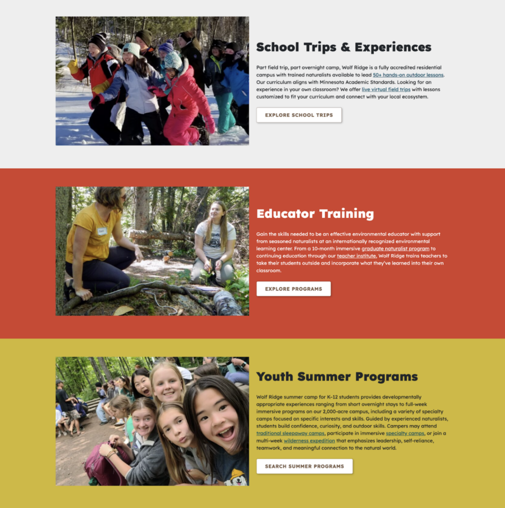 The second trend is the use of authentic images. We have all seen sites that use stock or generic images, which can look cold/clinical or overly composed. They can get a point across, but not necessarily with the flair that a client’s brand requires or the authenticity that our clients expect. Authentic images are easier for your customers and clients to connect with, can enhance your brand and show them exactly what to expect when they work with you. Regarding AI-generated images, in most cases it’s best to avoid using them on a website. They are easy to generate, but as we’ve all seen, they can be error-prone and usually feel like stock images – devoid of real life.