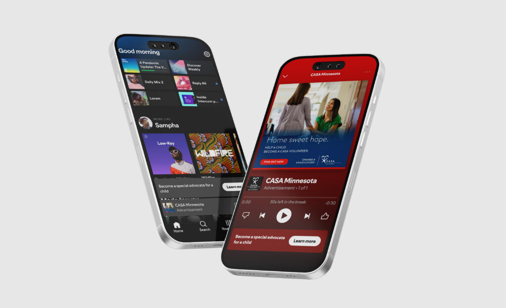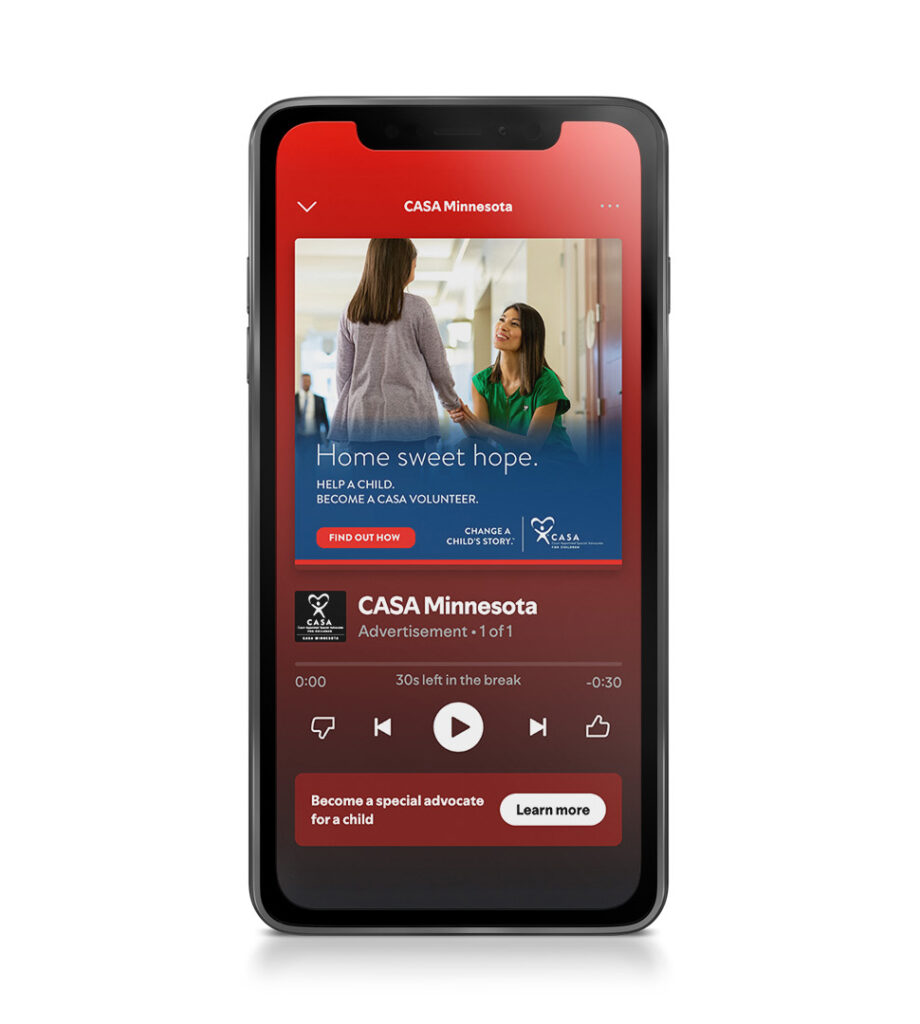Neuger partnered with CASA MN to develop and implement an advertising campaign to drive volunteer applications. We planned advertising placements via digital advertising, professional organizations’ newsletters, Meta, LinkedIn and Spotify. Unfortunately, a grant that CASA MN had qualified for fell through, reducing the planned budget by over 50 percent.